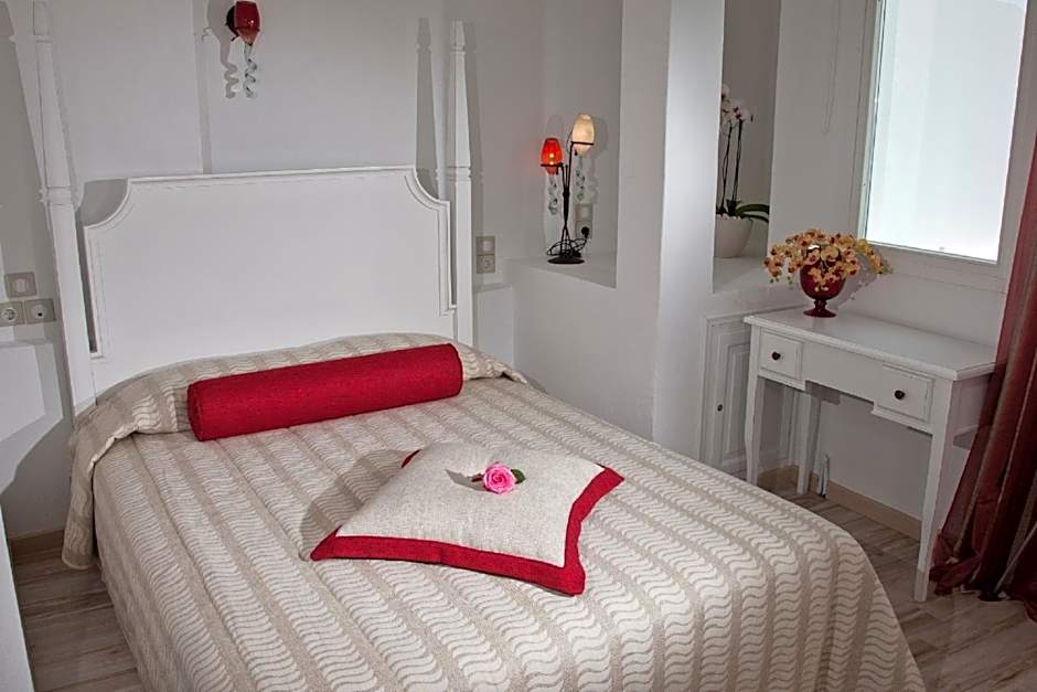 The executive suite features a veranda with Caldera views and a private hot tub and has a bathroom with spa bath. It is spacious and styled in characteristic Santorinian decor.